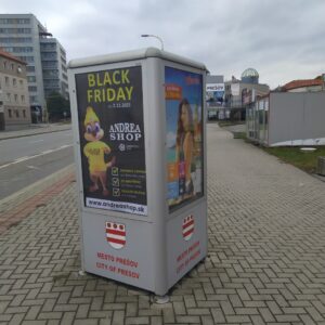 Tá istá súkromná spoločnosť má v Prešove na ul. 17. Novembra pri reštaurácii Hviezda, na parcele CKN 5671 vo vlastníctve mesta Prešov aj ďalšie „informačné zariadenie“, pre zmenu trojboké. Zjavne, štvrtá stena pre propagáciu mesta sa naň nevmestila, podľa stavu „okrášlenia“ grafitmi  tam nestojí týždeň a ani nie je ani uvedené v zmluve z roku 2017.