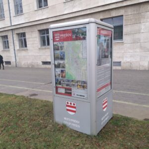 Aj toto „informačné zariadenie“, v pôvodnom podnete zničené, teraz už opravené, je zaujímavé. Informácia mesta – len pre dostatočne štíhlych, resp. cyklistov s orlím zrakom a fotografickou pamäťou.